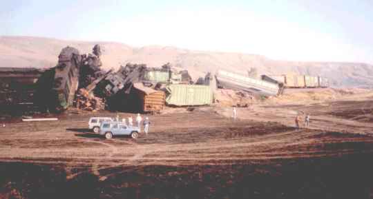 In the foreground is the remains of box car and one of the SD40's probably 6909 both from train 602. The views are looking north west with train 602 on the right. The extent of the damage can be appreciated as there are nine locomotives in the space occupied by 3.